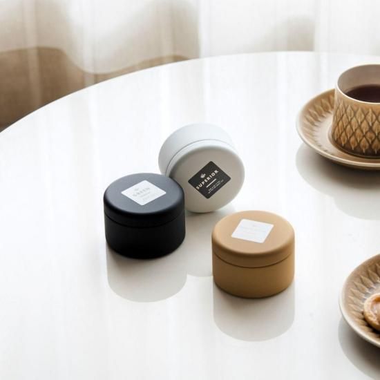 マットな質感の缶は、ホワイト・ブラック・ベージュの3色展開。飲み終わった後は小物入れとしてもお使いいただけます。